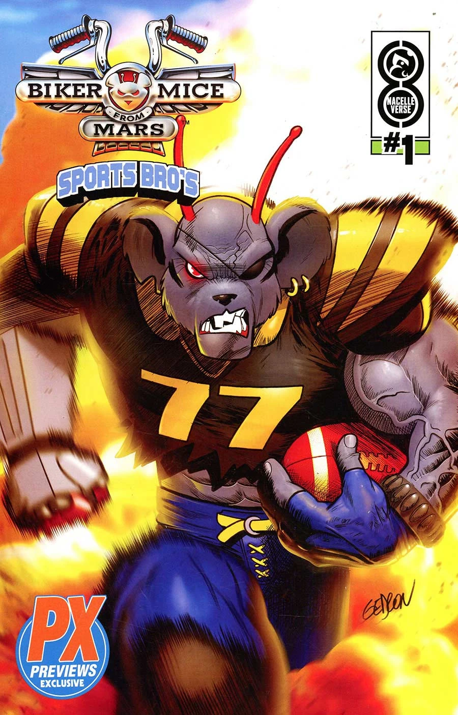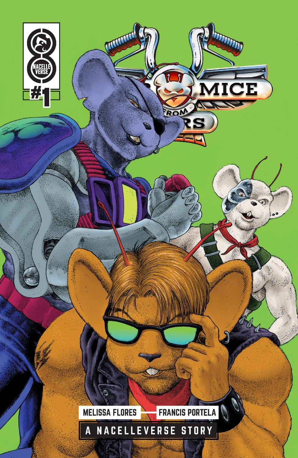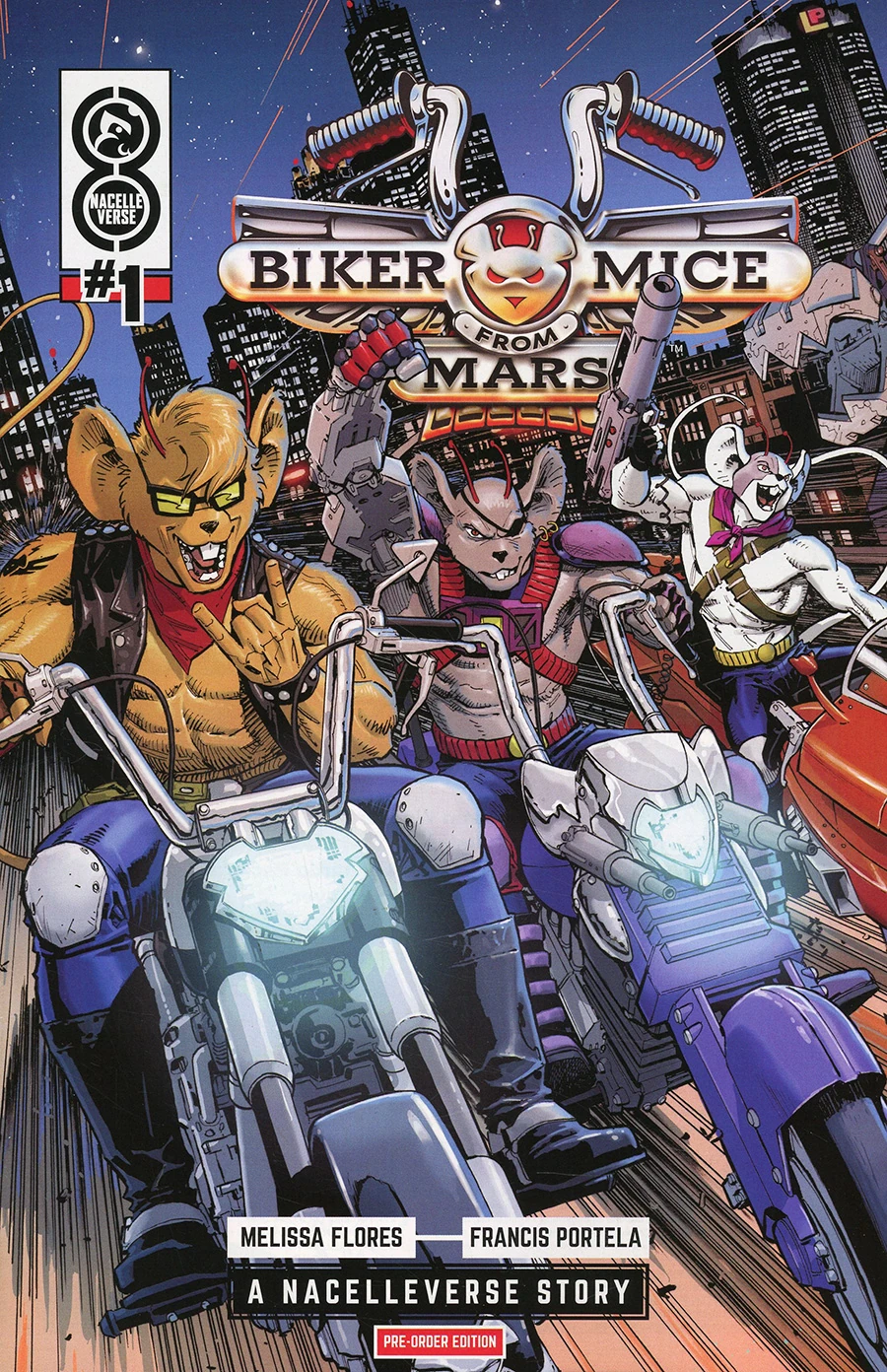 MARS! MICE! MOTORCYCLES! The next epic chapter of the Nacelleverse starts NOW with an ALL-NEW, ALL-ADRENALINE ADVENTURE for the free-wheelin’, butt-kickin’ animation icons who ride the Red Planet’s hardest roads! Rocketing out of the pages of NacelleVerse #0 . . . the ‘90s cartoon sensation is back in a brand-new comic book series from red-hot writer Melissa Flores (Mighty Morphin’ Power Rangers, Spider-Gwen: Smash) and Eisner Award–nominated artist Francis Portela (Green Lantern)! Best friends Throttle, Modo, and Vinnie were just three anthropomorphic, motorcycle-riding mice who called Mars home . . . and were always bad to the bone. But when the ruthless Plutarkians stage a mass invasion to strip their planet of its precious resources, their antiauthoritarian streak is going to turn into a full-blown insurgency. Only the Biker Mice from Mars can prevent the mass destruction of Earth’s neighbor . . . and the freedom of our entire solar system may just hang in the balance. Leading into the upcoming animated series by executive producers Brian Volk-Weiss, Cisco Henson, Matt Kravitsky, and Michael Goodman from the Nacelle Company, Maximum Effort's Ryan Reynolds, George Dewey, Kevin Hill, and Ashley Fox, as well as Fubo's David Gandler and Pamela Duckworth, the summer's most anticipated return revs up the action as a never-before-told chapter of Biker Mice history stands revealed! MARS WAR starts now!