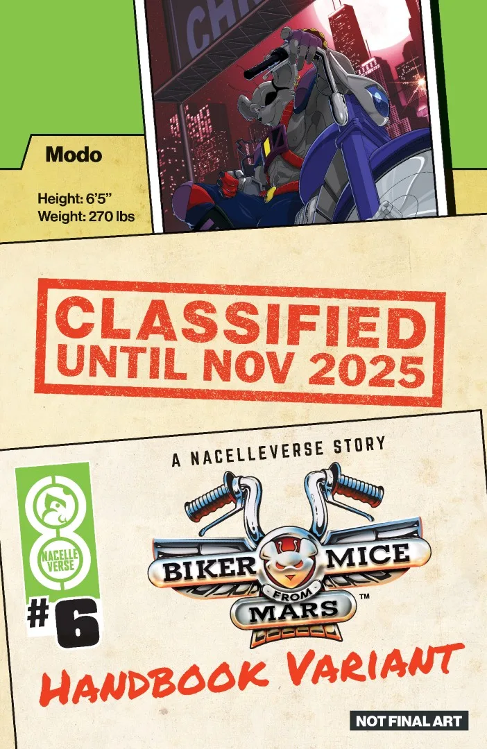 Biker Mice from Mars No. 6 is the sixth issue of the ongoing comic series by the Nacelle Company and published by Oni Press. It is set to release on November 26, 2025.[1]