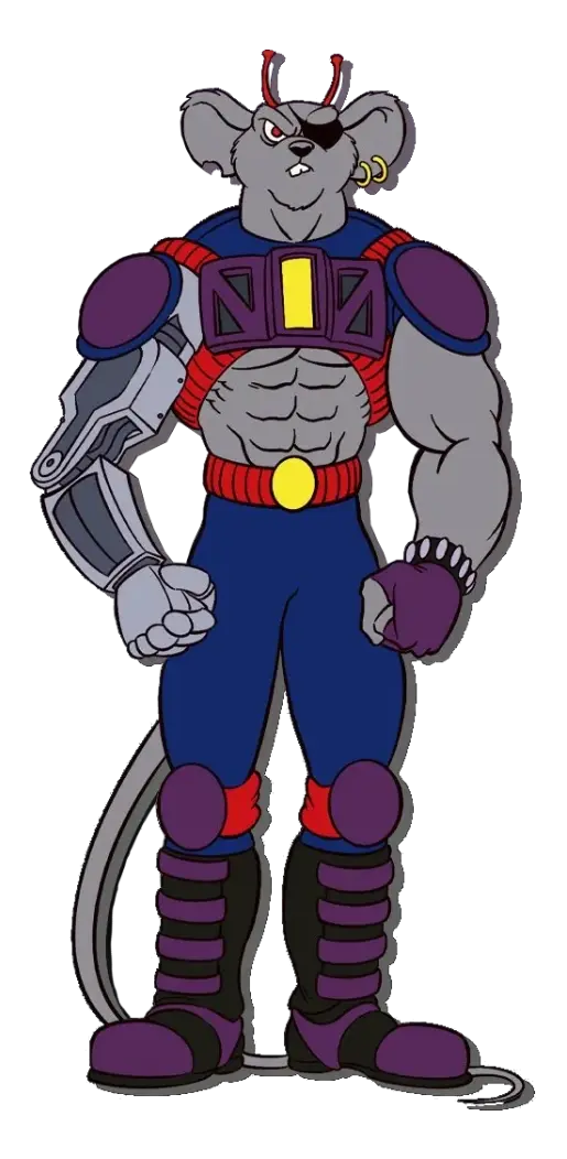 Modo is the most laid back and the gentlest of the Biker Mice; while he enjoys the thrills of fighting bad guys, his idea of a perfect day is a quiet fishing trip, especially with his nephew Rimfire. He is, however, capable of quick to rage if someone threatens Charley, his bros or his bike. He hates being called a rat, even if it's one of his bros as a joke ( "Bleu Cheese Bros"). The times he's been called a rat, his right eye usually glows red, it also glows when he's angry.